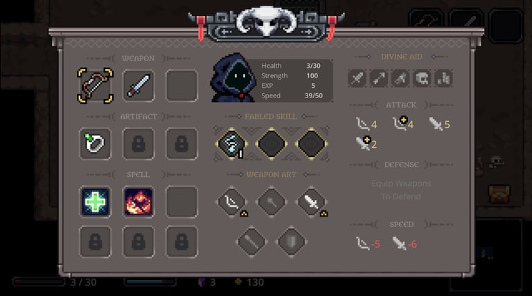 Weapons, artifacts and magic spells. Pick the right combination to suit your style of fighting.